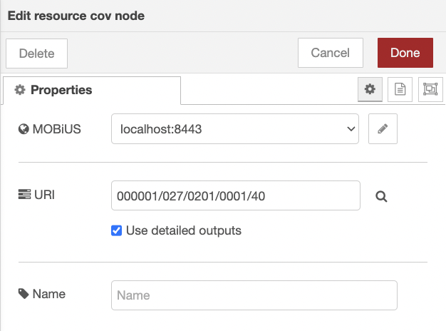 In the above example, the URI has been set to the resource 000001/027/0201/0001/40. Upon clicking done, the node label reflects this specification.