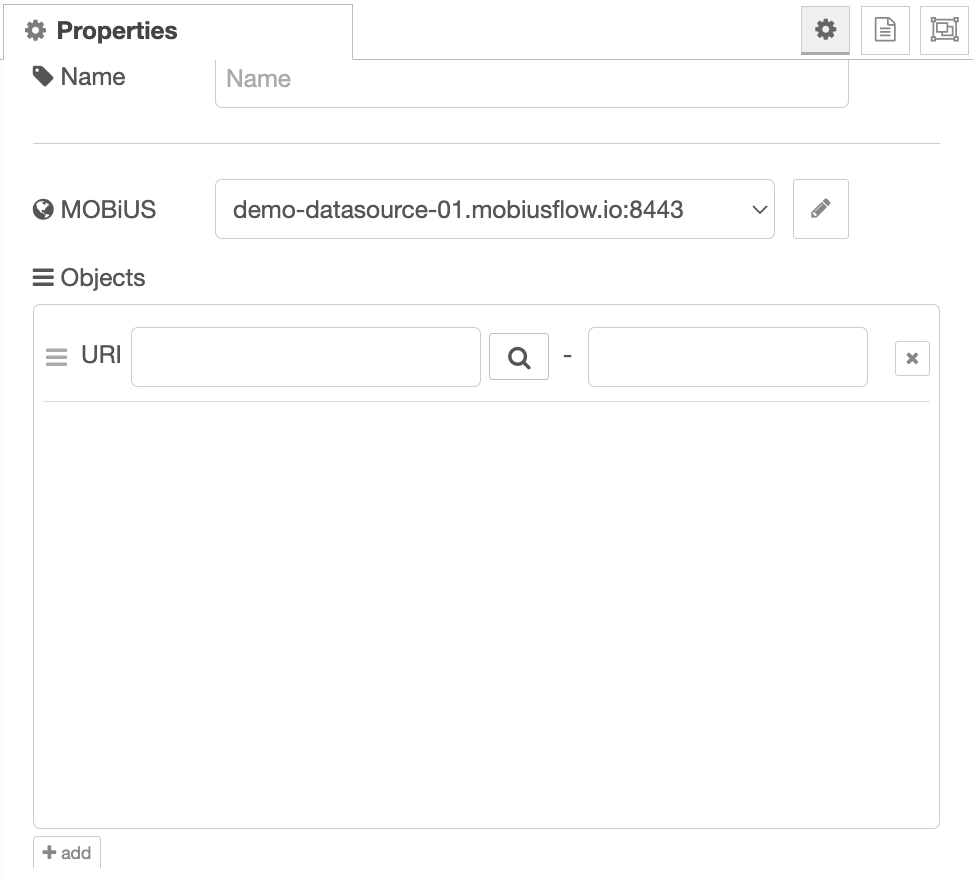 More URI rows can be added using the add button at the bottom left of the Objects table. The following screenshot shows an example node's config populated with 3 object URIs: