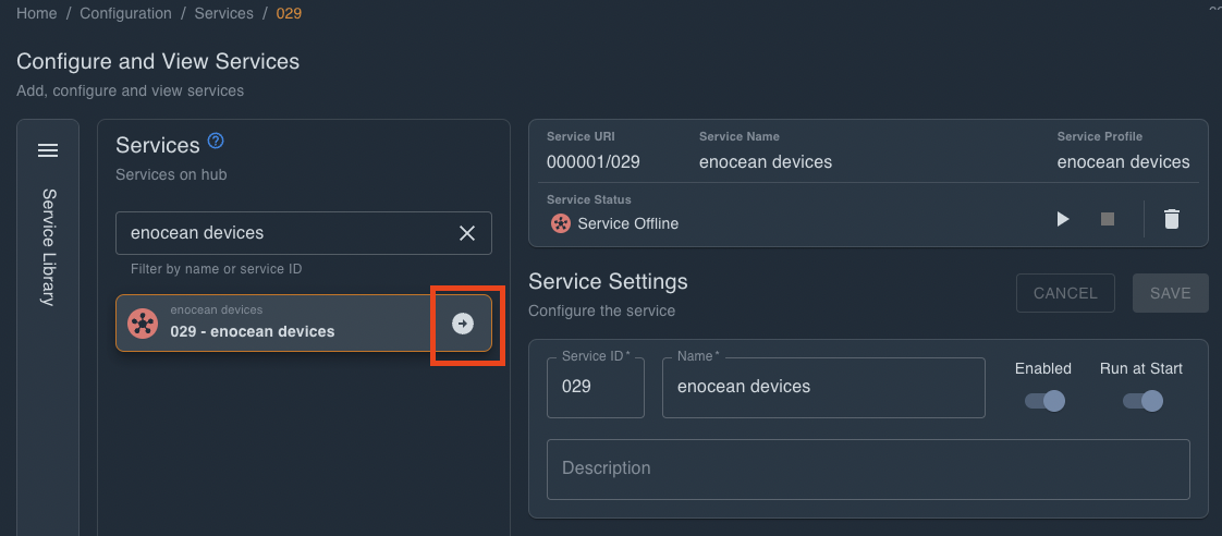 To add new EnOcean device objects, navigate to the object configuration page of the EnOcean Devices service.