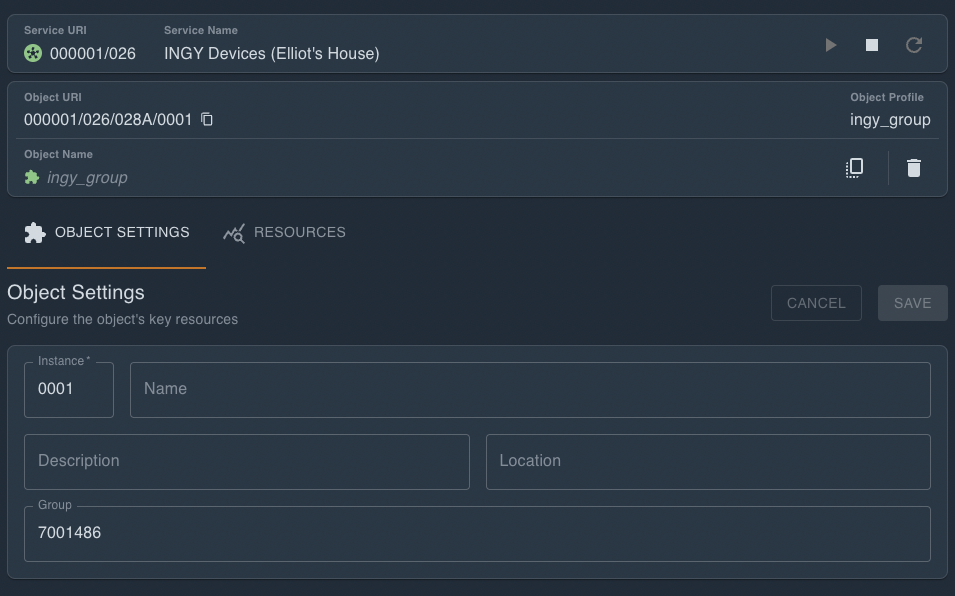 Every INGY object type will require the entry of the INGY node address (wirepas address) as well some other information: